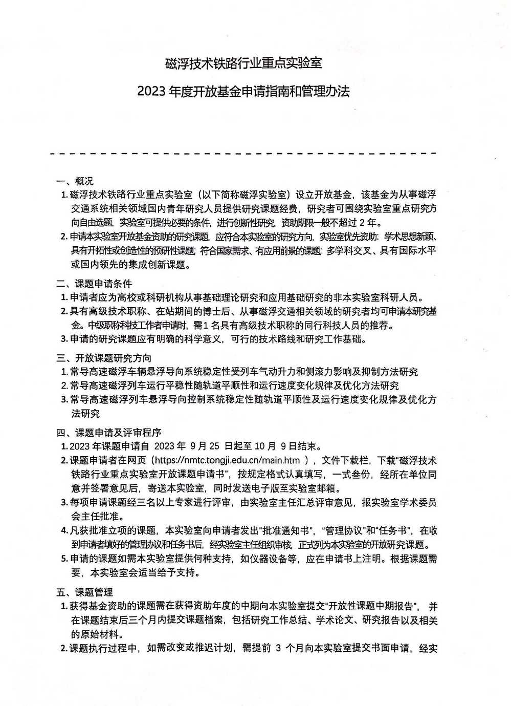 【测试】磁浮技术铁路行业重点实验室 2023年度开放基金申请指南和管理办法