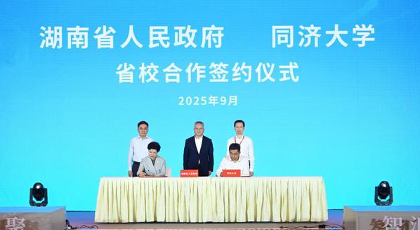 省校携手绘新章。9月27日,同济大学与湖南省人民政府签署合作协议,省校双方将发挥各自优势,不断深化在产业协同、科技创新、成果转化、人才培养等方面合作,共同推进同济大学“双一流”建设和湖南省“三个高地”建设。