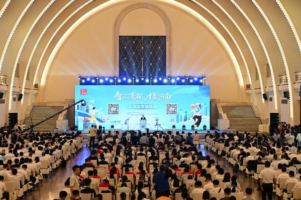 当天,湖南省还在上海展览中心举办现场招聘会,500家优质用人单位现场设摊引才。省校领导来到招聘会场巡展。同济大学数百名学生参加了上海站专场活动。