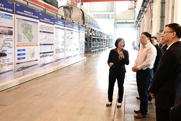 座谈会前,调研组一行参观了同济大学高速磁浮试验线,考察了在同济试验线上开展测试研究的中车四方、中车长客、中车株机的磁浮工程化样车。