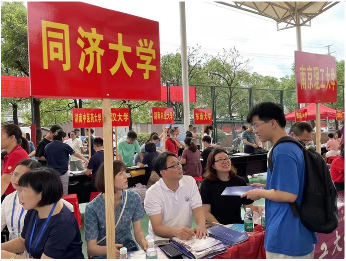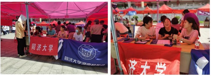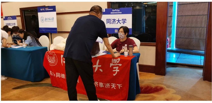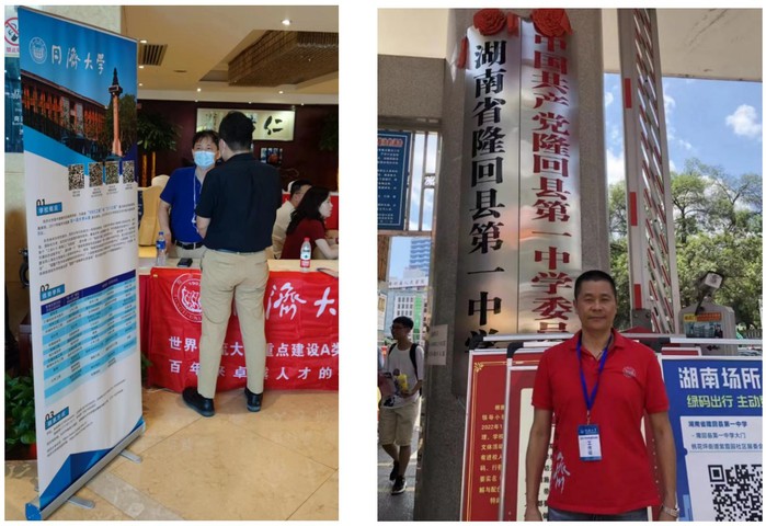 在湖南期间,老师,校友和在校返乡的同学们克服天气炎热,交通不便和疫情防控等诸多困难,兵分多路,以长沙为重点,并在湘潭、常德、永州、邵阳、张家界、湘西吉首、娄底、衡阳,株洲等十多个地市的中学集中开展同济大学招生政策宣讲和咨询工作。针对湖南考生及家长可能提出的诸多问题,参与招生咨询的老师,校友和同学们做好了充分的准备和培训工作,在现场耐心回答每一位考生和考生家长的问题,并详细介绍同济今年新推出的国豪精英班等招生新政策,登记有意向报考同济大学的考生信息,并在志愿填报截止日期之前进行了电话回访,鼓励说服考生第一志愿填报我校。