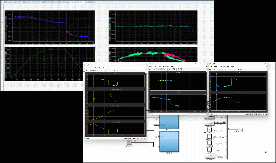 图2 与牵引快速原型控制器联合进行常导高速磁浮600km/h牵引控制系统实时仿真试验及结果