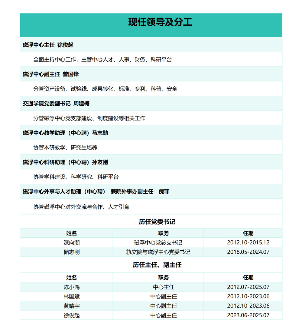 现任领导及分工