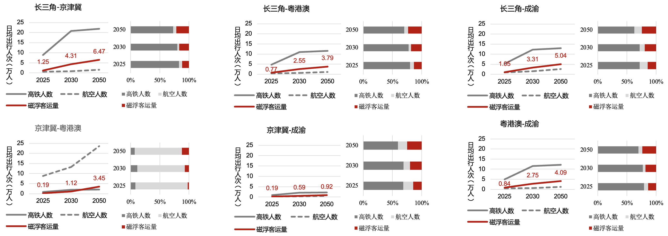 图1 四级六轴未来高铁、民航、磁浮客运量预测